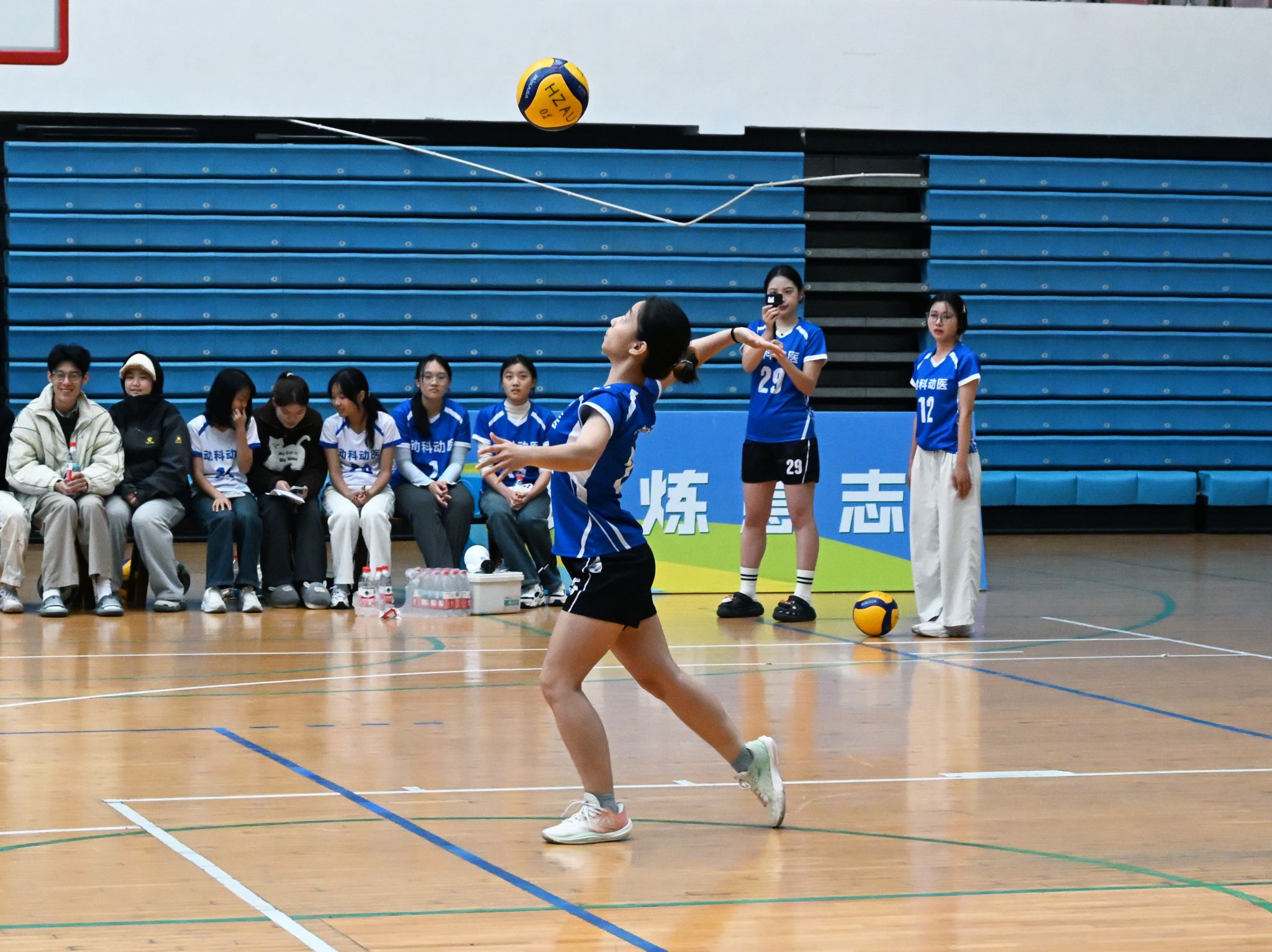 比赛伊始,动科动医女排迅速进入状态。首局较量中,23号所琪美一记精准发球,造成对方接发球失误;25号刘雅丽则以擦网发球直接得分,拉开比分差距。13号屈子婷在进攻端表现优秀,多次扣球得分,并在发球轮次中连续施压,造成对方接发球失误,进一步巩固领先优势。